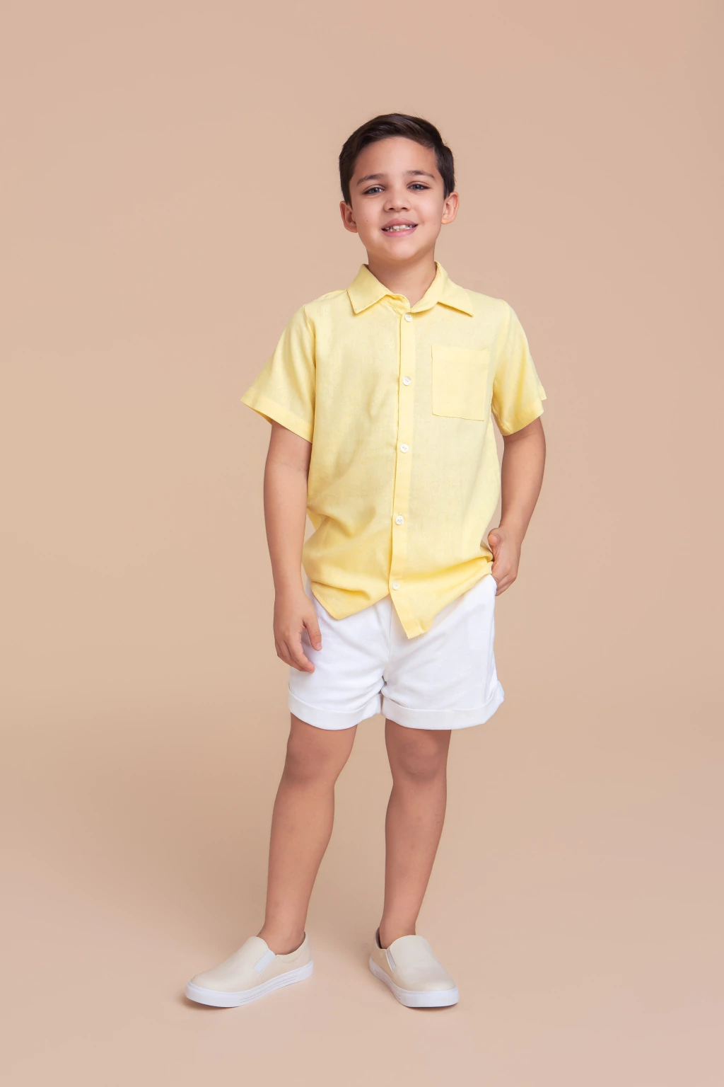 Camisa Théo Confeccionada em tecido de linho misto (linho com viscose) na elegante cor amarelo claro, a Camisa Théo é a escolha perfeita para quem busca conforto e estilo em dias quentes.